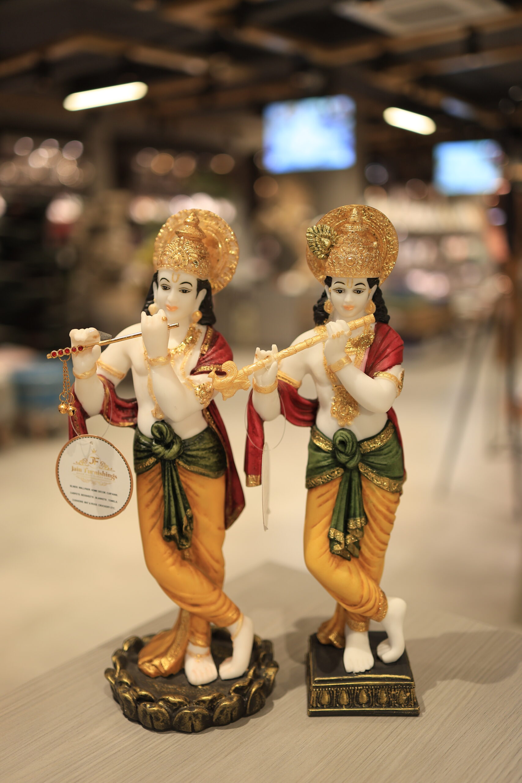 - Divine Duo: Beautifully sculpted figurines of Lord Krishna and Radha, embodying eternal love and devotion.