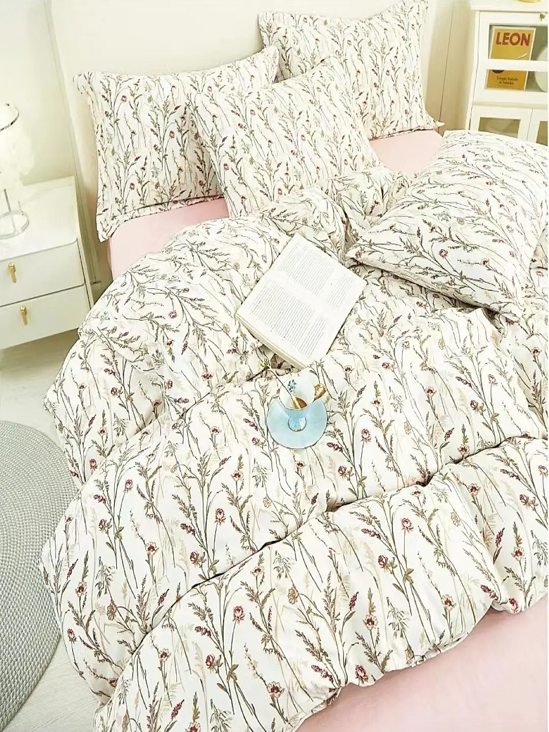 - Delicate Design: Features a subtle floral print in soft pink and white tones.
